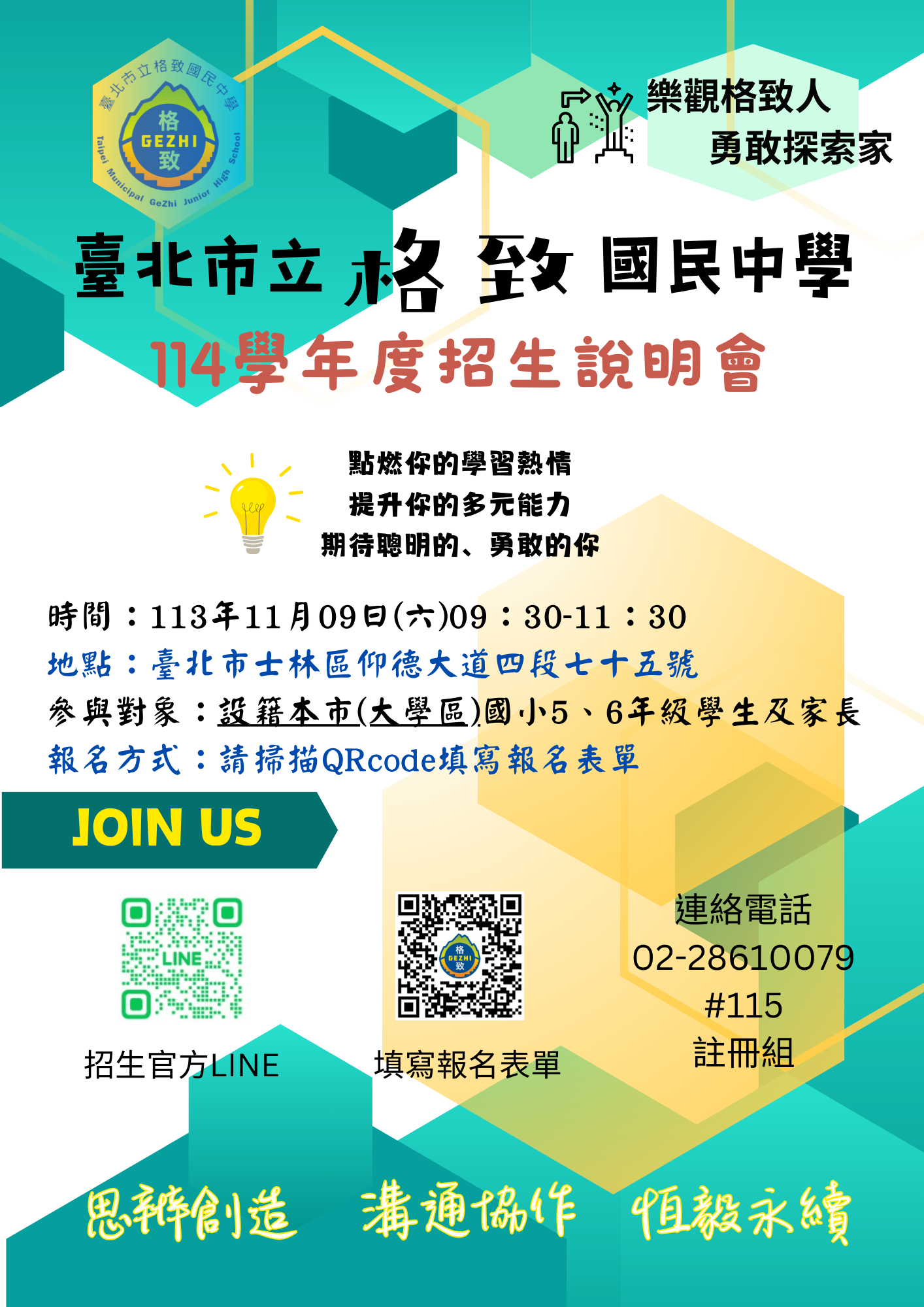 4、1130:賦歸。 四、報名方式:敬請有意參加招生說明會之學生及家長,於 113年11月3日(星期日)前登錄Google表單 (https://forms.gle/dzfaodJYpHU3MRzp7)完成報名。