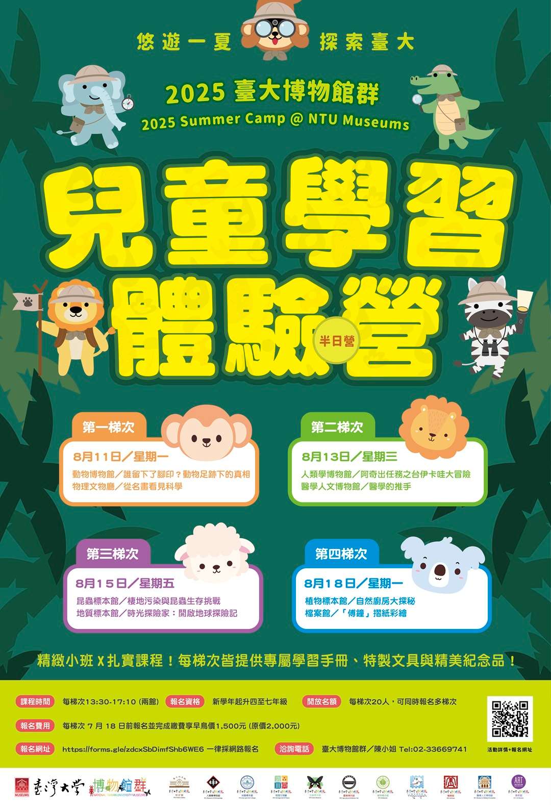 二、「悠遊一夏 探索臺大:2025臺大博物館群兒童學習體驗營」相關資訊如下: