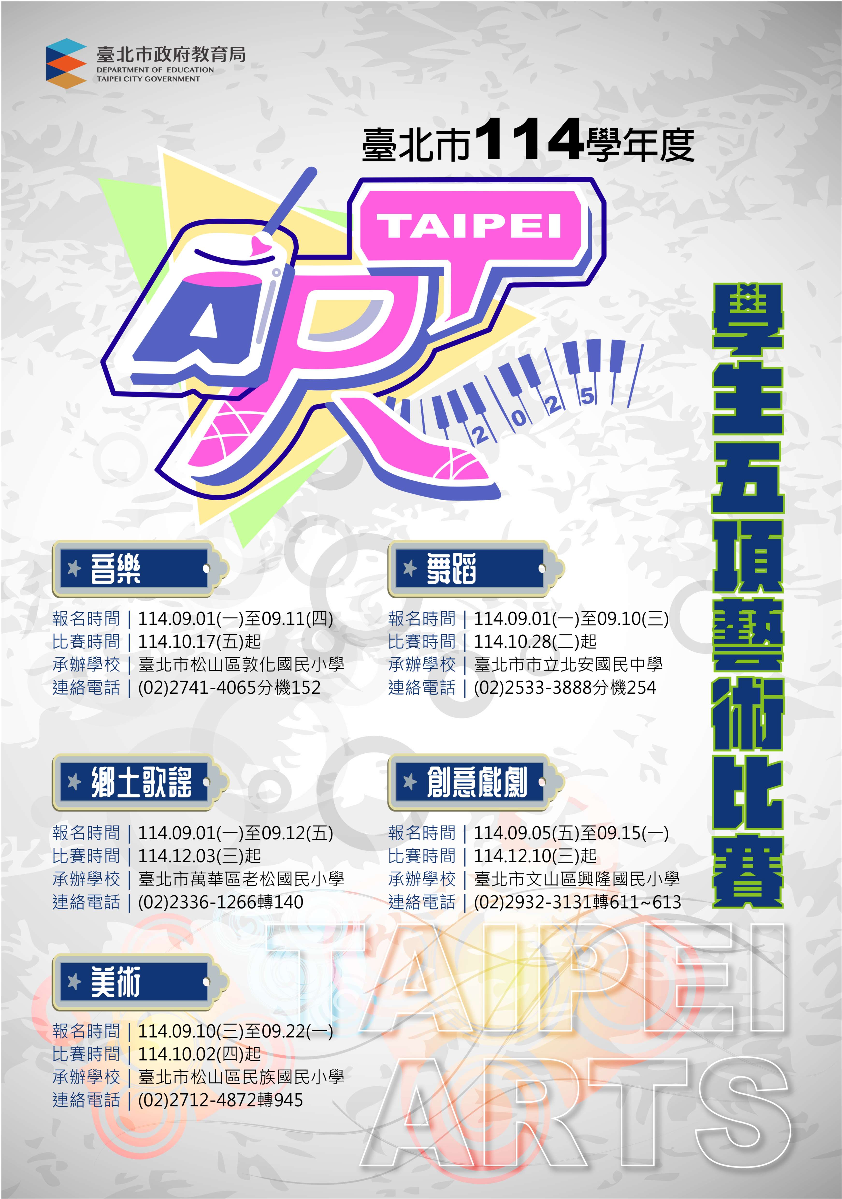 114學年度臺北市學生舞蹈比賽現正報名中,敬請把握時間!相關內容,詳如附件。