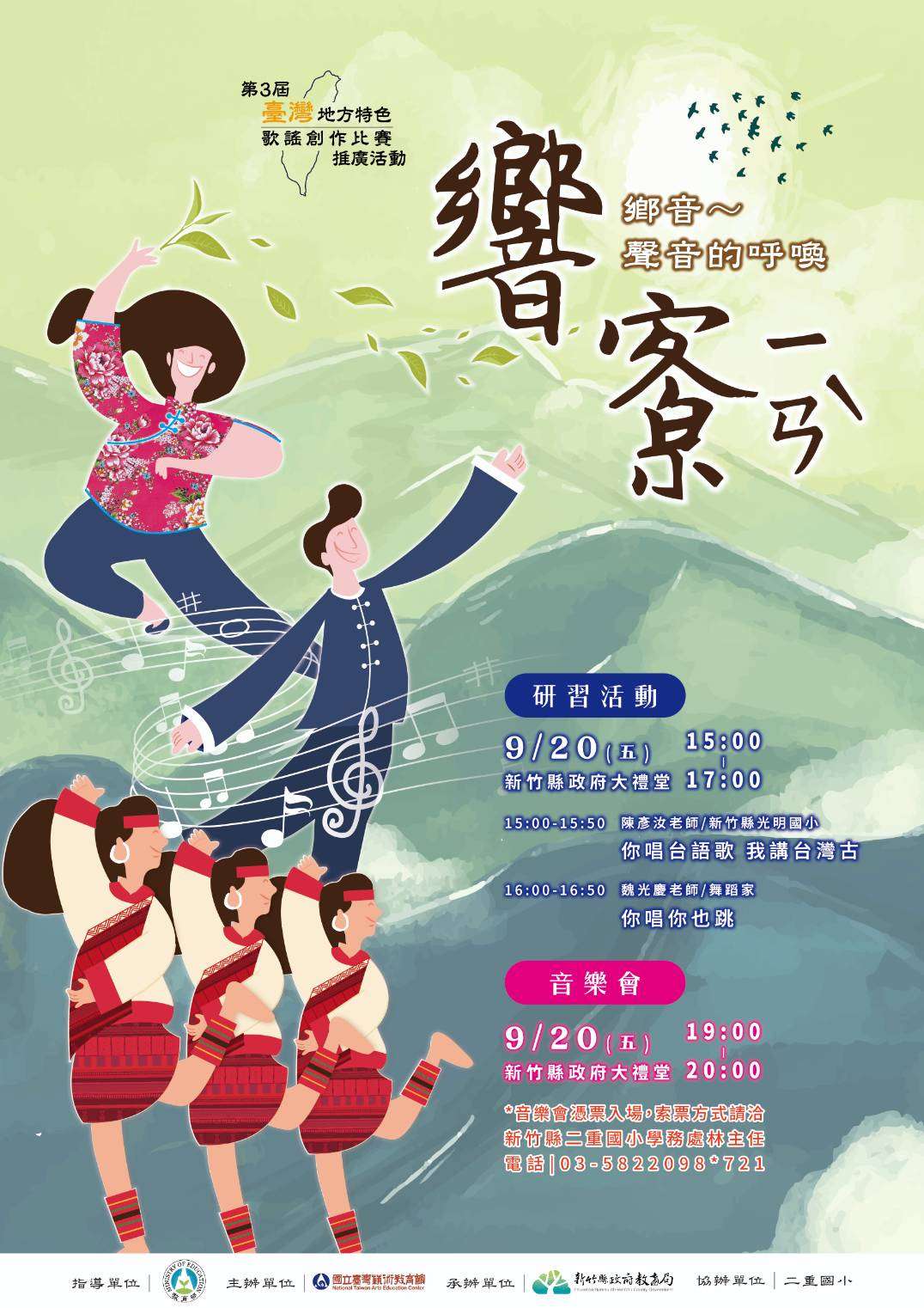 一、為鼓勵地方特色歌謠傳唱風氣,培養在地音樂藝術人才,教育部委請國立臺灣藝術教育館辦理歌謠創作比賽,希冀參賽者透過擷取各縣市文化元素為內涵,創作地方特色歌謠,以達傳承、發揚、創新及深化本土文化認同之目標。