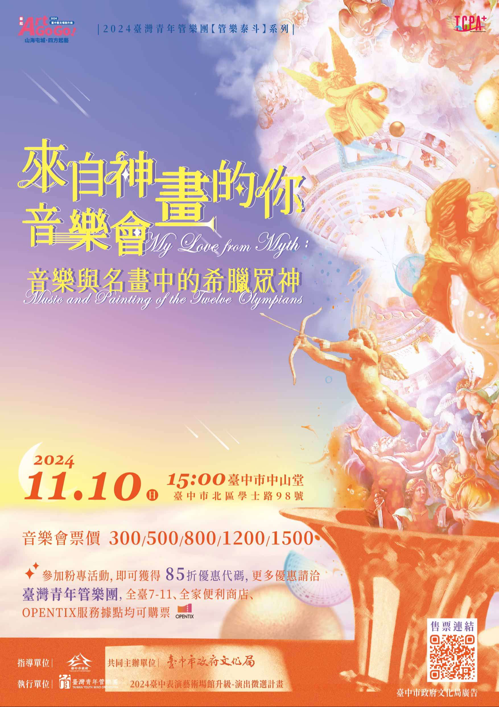 二、節目介紹:臺灣青年管樂團『管樂泰斗』系列音樂會,2024隆重呈現【來自神畫的你】音樂會-音樂與名畫中的希臘眾神,是一場融合希臘神話與西班牙作曲家奧斯卡·納瓦羅的《奧林帕斯諸神》交響組曲的音樂會。十個樂章生動描繪十二位神祗,以具挑戰性的曲目展現管樂團的卓越演奏技巧;特邀Podcaster葵花子在樂章中介紹名畫,讓觀眾更深入理解神話故事。