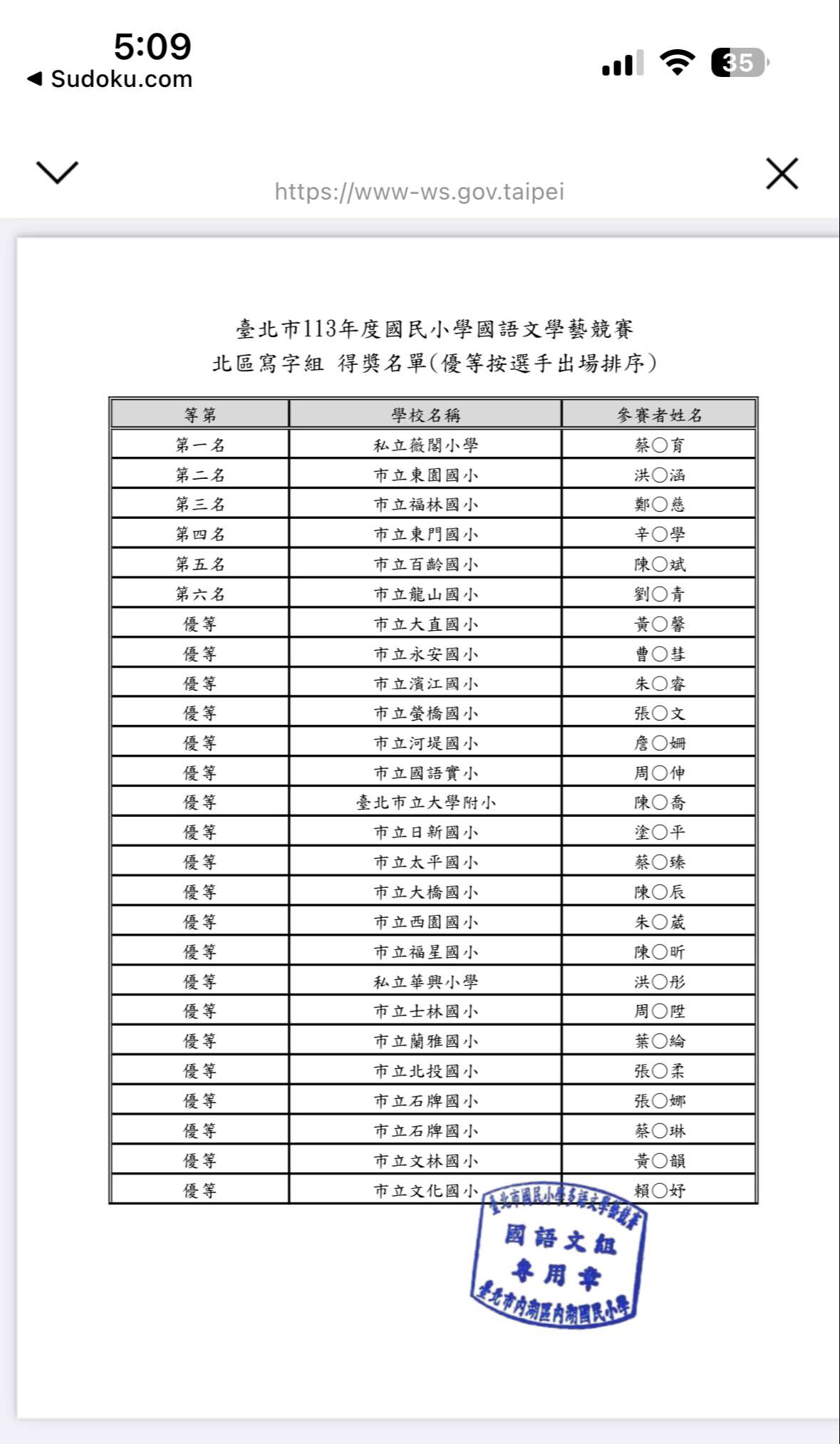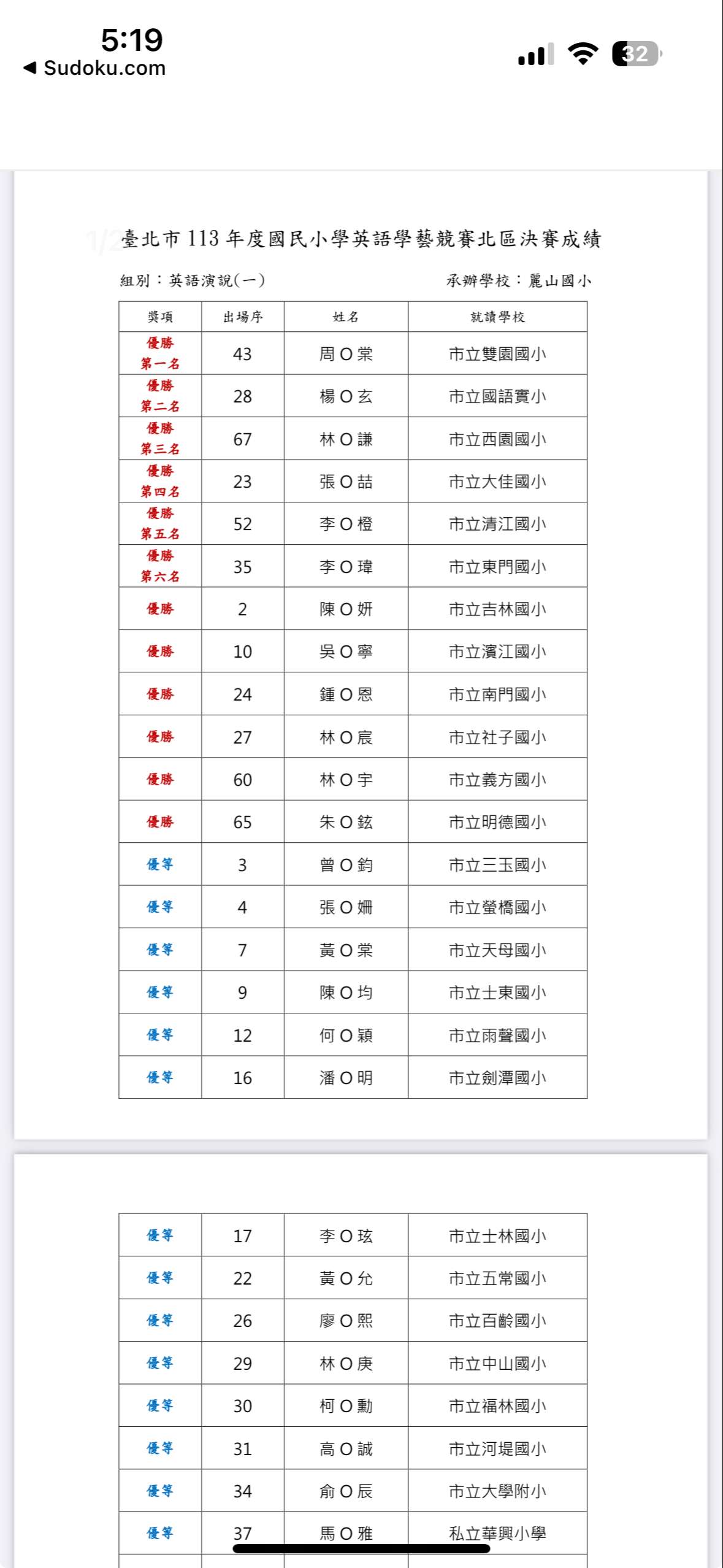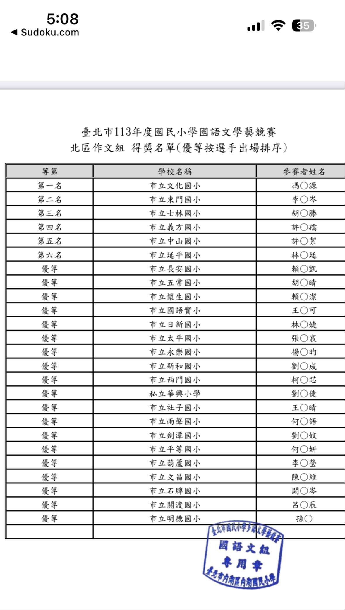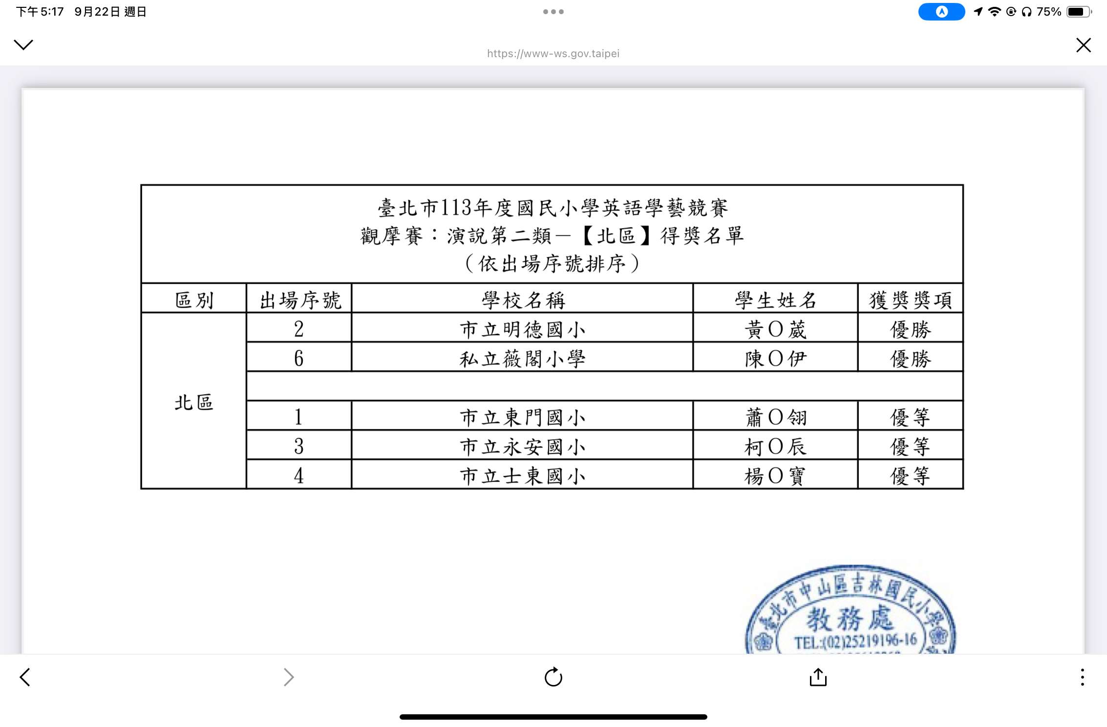英語讀者劇場 502 簡妍恩 502 沈兆軒 502 馬相惟 503 高博橋 507 方翊安