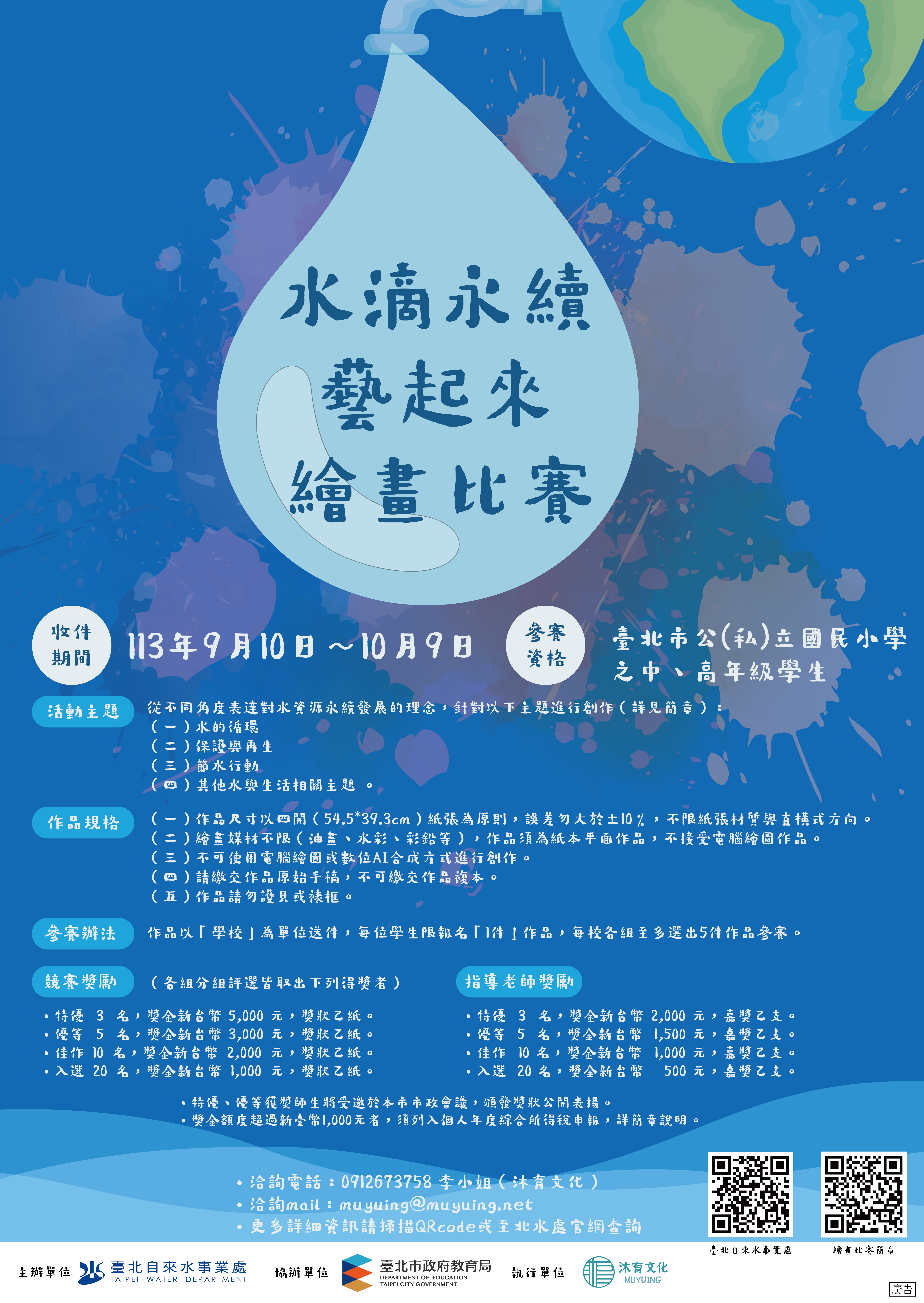三、檢送113年「水滴永續藝起來」繪畫比賽簡章及海報各1份 (如附件)。