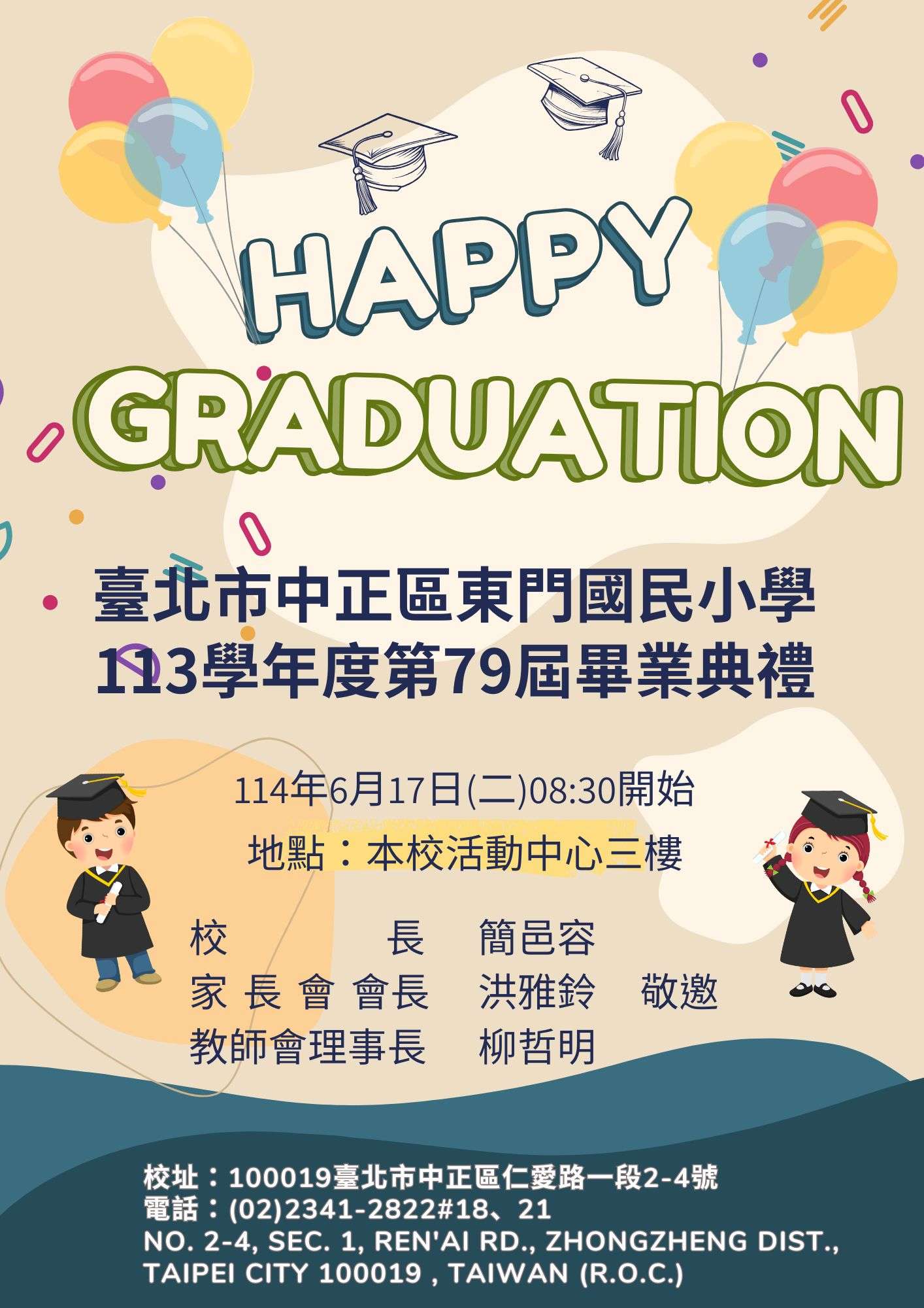 敬邀蒞臨臺北市東門國小113學年度第79屆畢業典禮