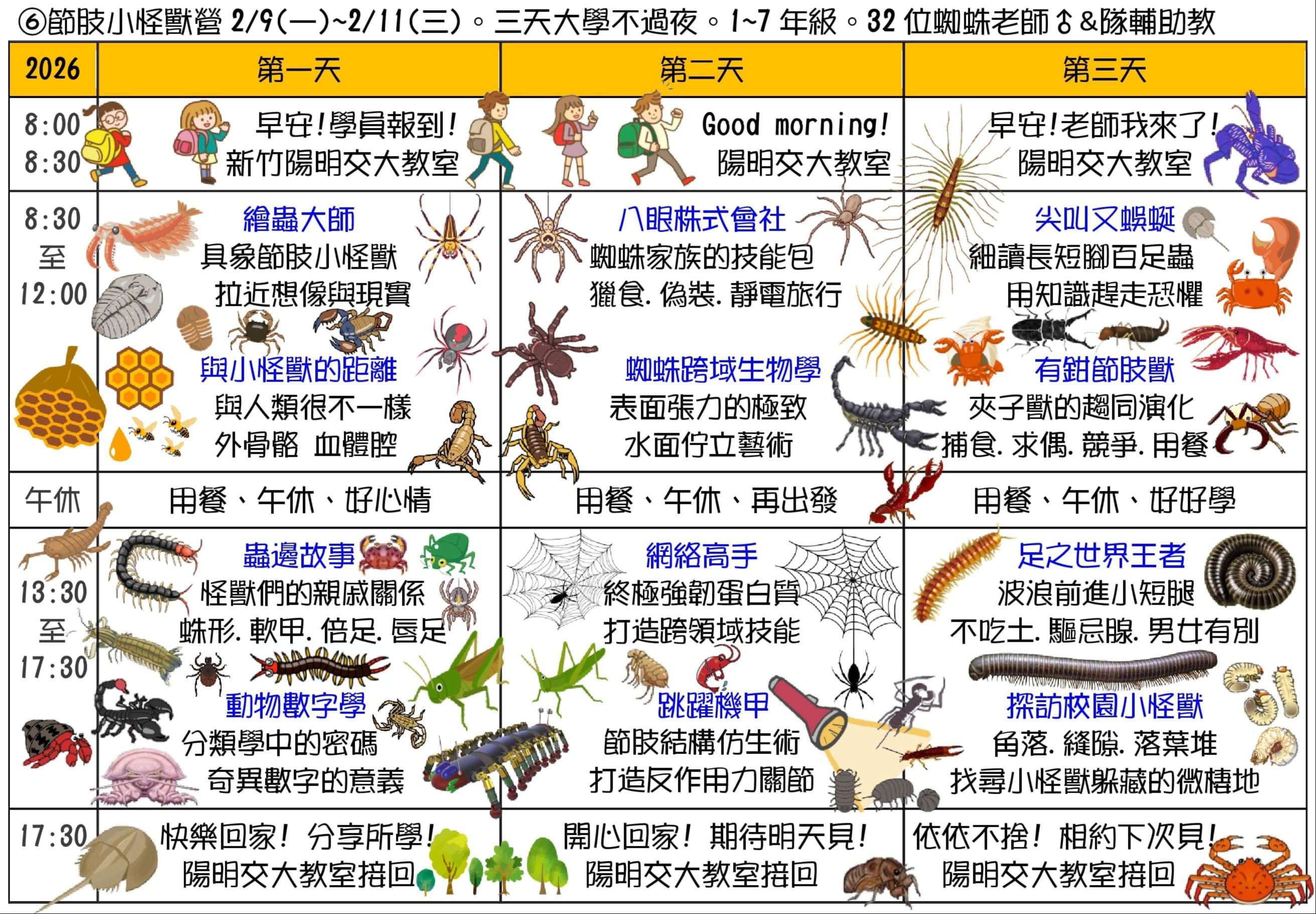一、2026生態素養冬令營日期1/24~2/12,招生一-九年級學員,依不同課程分齡參加,詳細請見營隊課程網站:https://www.i3nature.com.tw/ 。
